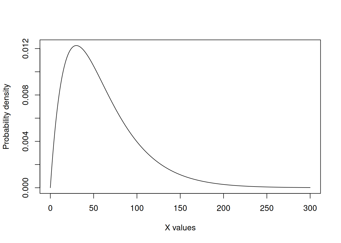 We can see that the data below does not resemble a symmetrical bell-shaped population. It’s heavily skewed towards lower values. In this illustrative case, the population mean is 60.